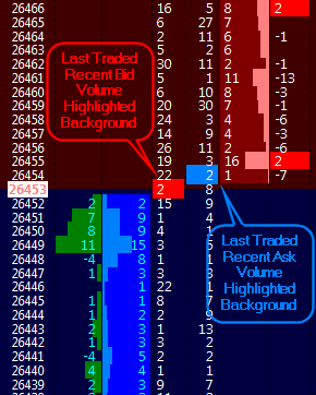 In addition to the option to bold the recent price level would it be possible to add separate color background settings for the bid and ask columns to highlight the background at the last recently traded price level at the bid and ask? This would be similar to the color highlight settings for the Last Traded Recent bid/ask volume Background on the Chart and Trade DOM that highlights the last trade at the bid AND last trade at the ask.