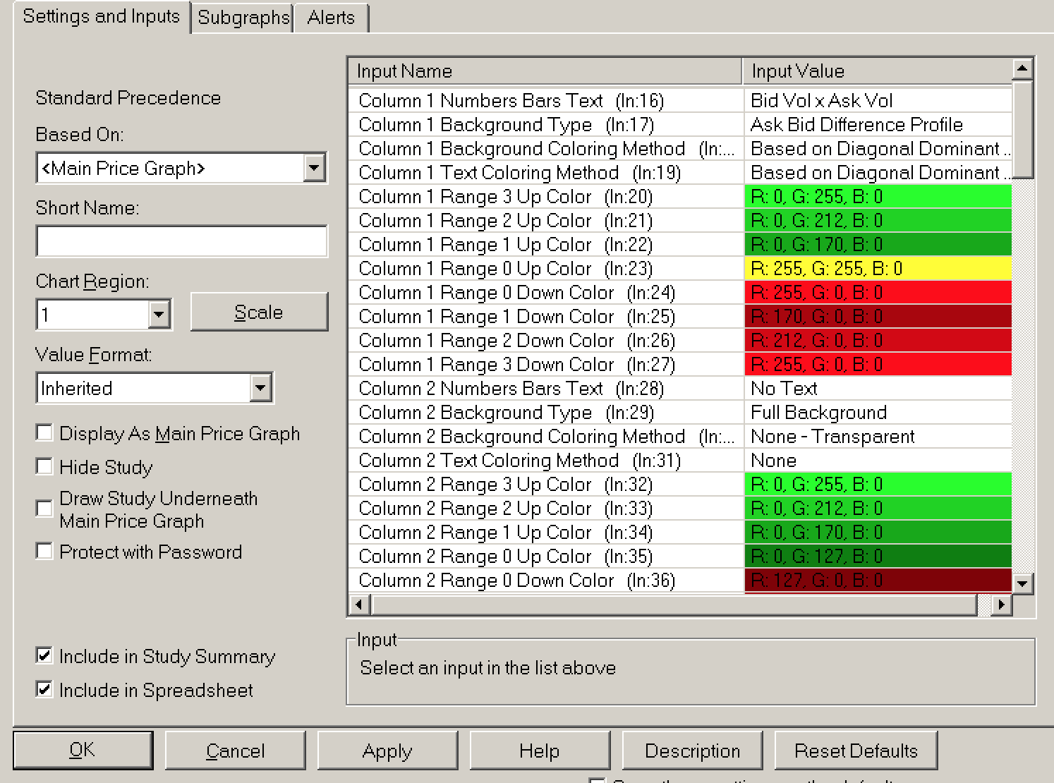 You can set the font color for the text using the following Input: Numbers Bars: Default Text Color You can also use the "Text Coloring Method" to color the text based on some condition, most likely the same one that is used for the background coloring. Then you can use the option for a different set of colors for the text and adjust the text colors to be contrasting to the background colors. Refer to the following: Numbers Bars: Use Separate Colors for Text Coloring Method For the most reliable, advanced, and zero cost futures order routing, use the Teton service: Sierra Chart Teton Futures Order Routing |