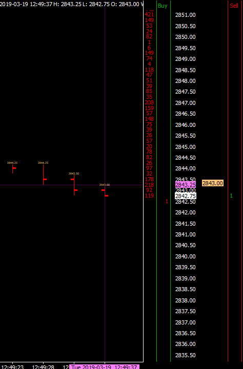Hi John, The reason I use CUSTOM_VALUE_AT_Y is that I can use the price value to display the SG data value it is holding. The Study Subgraph Above/Below Bar as Text is set to using the CUSTOM_VALUE_AT_Y Drawstyle because of that reason. Your recommended drawstyle will place the label at its SG actual value and not at the price value. So what you propose is not going to solve this issue. The observation I make is not huge, but just enough to try to get you guys to fix it. The label I show in the pictures is just a tiny bit above the pricelevel I expect to see. The High of the bar is at 2843.25 and the label is just hover above that in the label column. The pink price on the picture is my cross-hair placed at the high of the bar. Do not look at the actual value of the label, that's not important. Do I need to attach a chartbook? (edit) the reason I ask is because I am developing a study that is using the mentioned drawstyle on the DOM label column. I use one of your studies to point out my observation. If you for example use The SG reference study and plot say the high price of the current bar in the labelcolumn using a regular drawstyle like Line you will see that that is perfectly aligned compared to the CUSTOM_VALUE_AT_Y and the TRANSPARENT_CUSTOM_VALUE_AT_Y drawstyles. I would like to get that difference fixed. Frederik Date Time Of Last Edit: 2019-03-21 05:45:41