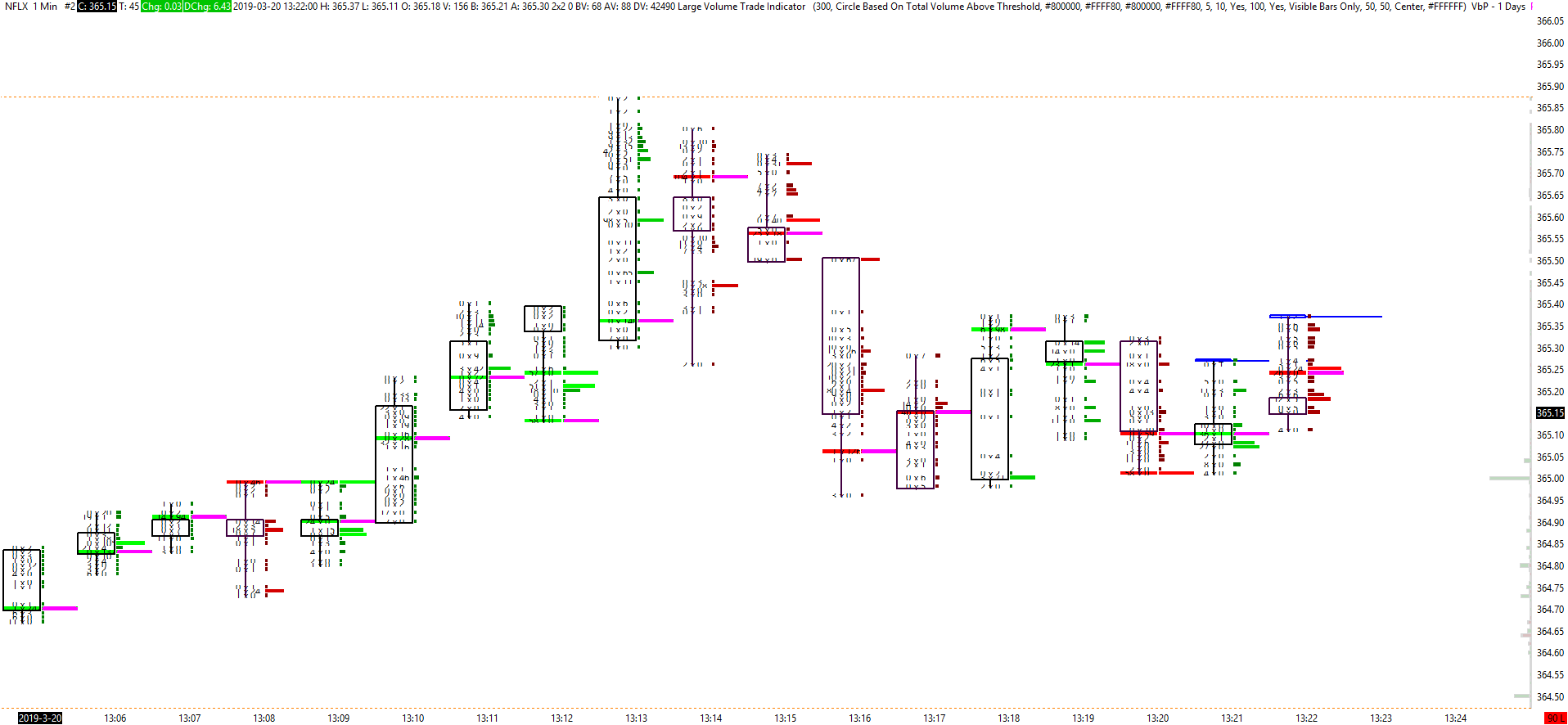 Hi, Is it possible to aggregate counts of orders for equities? For example, if you take NFLX (http://www.sierrachart.com/image.php?Image=1553102986630.png), you see that are lots of gaps because there are no trades for specific prices. Now, is it possible to group the trades say - for every 20 or 30 cents? like, all the trades from 365.00 to 365.20 is shown as 1 row - something like 5123x4584 - which contains all the bids that happened at that time between 365.00 to 365.20 and all the asks that happened between 365.00 to 365.20. I hope I am explaining this clearly - please let me know if you need clarification on this. I wanted to display it this way, because since not all prices have trades in equities (unlike futures), I thought it might make the chart easier to read because right now, I need to scroll, adjust y-axis to clearly get a look at the information on the chart because if I zoom out, since there are a lots of levels, it numbers become too small to read (http://www.sierrachart.com/image.php?Image=1553103308487.png). I understand that these types of charts are primarily meant to be used for futures where the price levels are in increments of a specific amount and there is ample volume for all price levels, but just wanted to try order flow for equities to understand price action. If there are other better ways to do this visualization of bids/asks happening inside the bar without messing up the chart scaling or anything like that, I would really like to read and explore about it. |