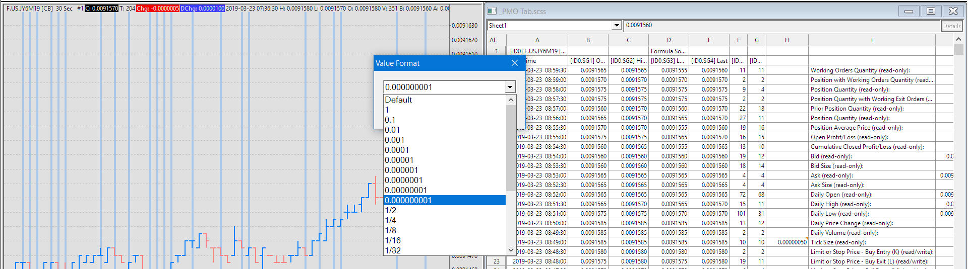 The format in the table is set to maximum. Problem still exists. How to select all the bars with a size of 1 tick? Date Time Of Last Edit: 2019-03-23 09:08:17