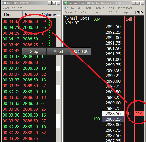 @Sierra Chart Engineering, Is it correct that volume for the Cumulative Last Size at Bid/Ask and the Cumulative Last Size at Price cannot be displayed concurrently in the same column? I was hoping this might now be possible in Sierra Chart, similar to the changes in version 2036 that implemented the option to Display Cumulative Last Size in Current Traded Total Volume. If not, I would accept an additional column to be able display both volume counts at the same time, side by side on the DOM. @seandunaway, Based on your original request above, it seems that we both use the Time and Sales Window with the setting "With Same Price and Type". I also use the Cumulative Last Size at Price columns (see image attached) to compare the volume traded in contrast to the orderbook. The request is intended to consolidate the most recent volume at the bid/ask from the time and sales window into a single column on the DOM with the Cumulative Last Size at price. When the orderbook is reloading it would be easier to see the imbalance in the most recent cumulative volume at the bid/ask compared to the total volume traded at the same price. Many times those imbalances are missed because of the speed of the time and sales window. This would definitely make it easier to see the difference between the cumulative last size at the bid/ask vs the cumulative last size at price. For example: 50(50) at the Bid would tell me that the most recent trades were one sided trades vs 50(500) at the Bid would indicate that there is two sided trading occurring at the current price level and may be a potential breakout or reversal when compared to the size of the orderbook near that price. I could see both values Without having to take my eyes off the column to see both the tape and the cumulative last size. Hope that provides some clarification of my thinking. Thanks |