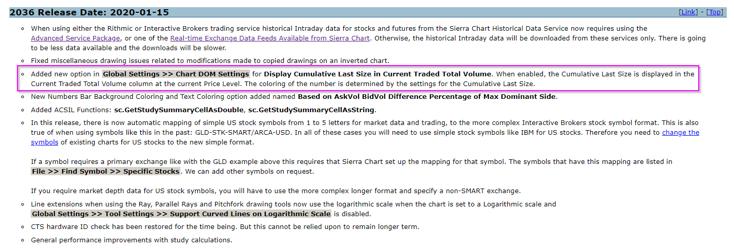 I mean to ask, Can DOM column "Cumulative Last Size" combine records in the same manner Time and Sales records can be combined by "With Same Price and Type" instead of it's current function of combining by Price only? Date Time Of Last Edit: 2019-04-05 06:50:41