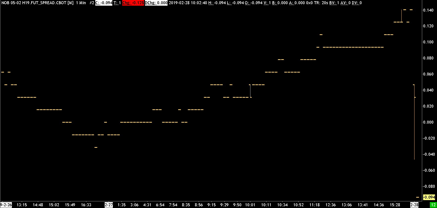 Dear Support, Can you please let me know if it is possible to open already expired exchange traded spread contracts? I am using the SC Futures datafeed and can open currently traded contracts but not expired ones. I tried to simply replace the expiration month when using the SC spread symbol format, but I'm not sure if thats the correct way: replaced NOB 05-02 M19.FUT_SPREAD.CBOT with NOB 05-02 H19.FUT_SPREAD.CBOT Daily chart loads correctly (a bit slowly), but no intraday data. Can you please advise? Thank you. |