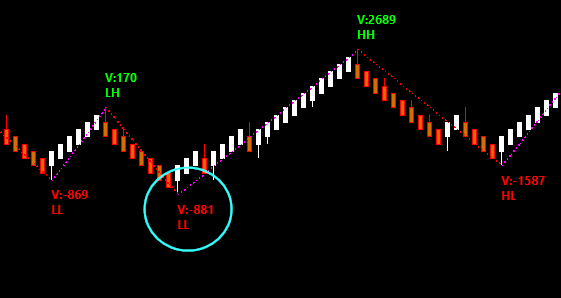 The delta accumulated volume for each zig zag rotation can be displayed as shown in the attached screenshot. The subgraph SG5, accumulated volume, tracks the volume for "every" bar; however, I would like to know if the volume at "each rotation" (as shown in the attached screenshot) can be retrieved in order to be used in a alert. |