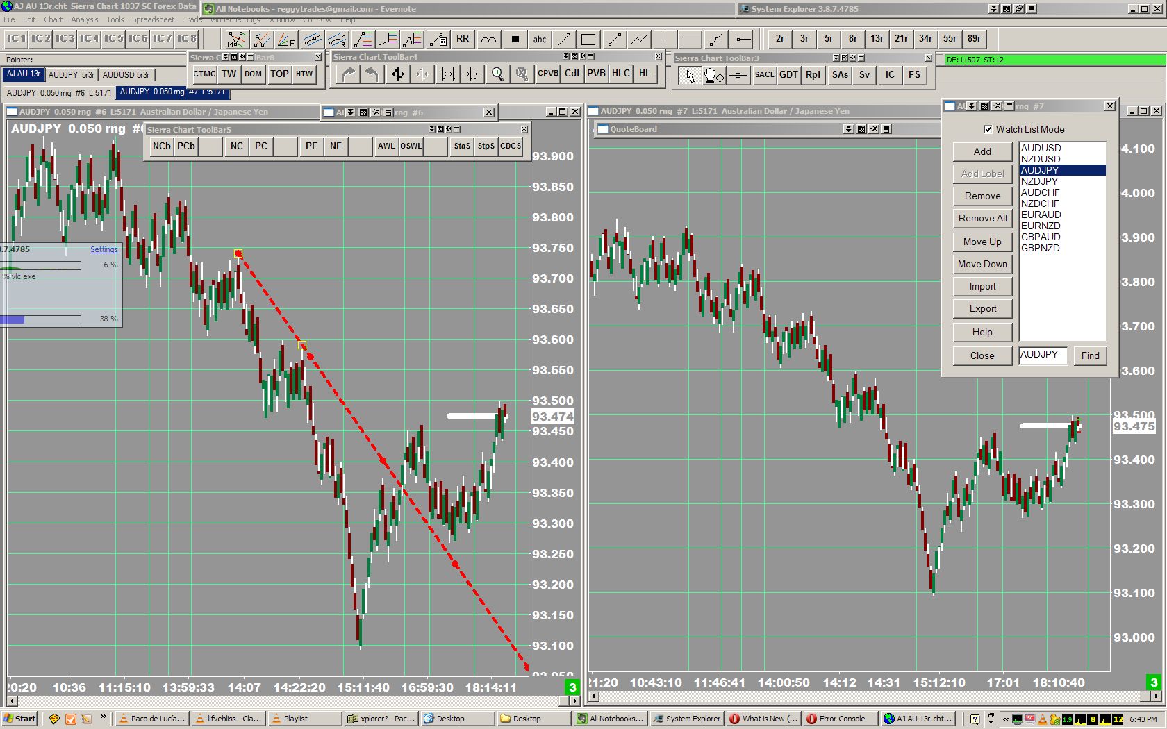 Thank you for your rapid response. I'm relieved to know it was just an oversight on my part. Yes, you were right about the global symbol settings for the price formats. Still getting a drop of trendlines drawn on a symbol when the symbol is changed. Any ideas? Thanks again for a great product. Please see attached two screenshots. First shows chartbook w/AUDJPY 5rng, AUDUSD 5rng charts. AUDJPY has a red trendline drawn. Second screenshot show the same chartbook w/ AUDJPY 5rng, AUDJPY 5rng charts. After changing the symbol from AUDUSD to AUDJPY the chart does not copy the trendline from the AUDJPY chart on its left. Thanks again. Again, my mistake. Have attached the correct screenshot. Thanks. Date Time Of Last Edit: 2013-11-21 20:12:59