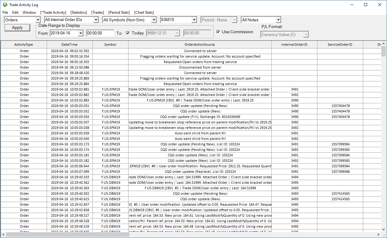 You need to select Trade Activity at the top menu. And then at the top left you need to select "Fills" instead of "Orders". And then press Apply. Sierra Chart Support - Engineering Level Your definitive source for support. Other responses are from users. Try to keep your questions brief and to the point. Be aware of support policy: https://www.sierrachart.com/index.php?l=PostingInformation.php#GeneralInformation For the most reliable, advanced, and zero cost futures order routing, *change* to the Teton service: Sierra Chart Teton Futures Order Routing |