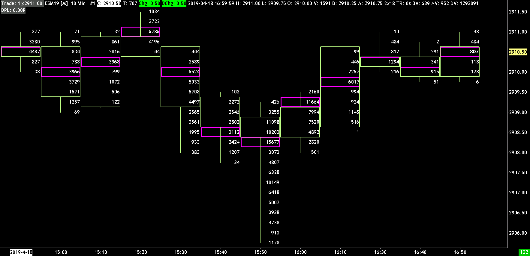 Does sierra chart's included default data feed provide S&P 500 Tick alongside standard NYSE tick? If no, which data feed should i use? Sierra Chart Market Statistics Can i plot point & figure charts (example-9 tick reversal) in bar chart (OHLC) format ? Do such format give ghost highs & lows on each new PnF bar chart? Yes this is fully supported. The high and low values are accurate.On service package 5, can i plot footprint chart as candlestick with each candlestick's high volume node only as just a dot inside that candlestick chart? http://www.sierrachart.com/image.php?Image=1555742780727.png The violet rectangle is the point of control. Do you provide for e.g-90 days composite profile ? Volume By Price Study Sierra Chart Support - Engineering Level Your definitive source for support. Other responses are from users. Try to keep your questions brief and to the point. Be aware of support policy: https://www.sierrachart.com/index.php?l=PostingInformation.php#GeneralInformation For the most reliable, advanced, and zero cost futures order routing, *change* to the Teton service: Sierra Chart Teton Futures Order Routing Date Time Of Last Edit: 2019-04-20 06:47:24