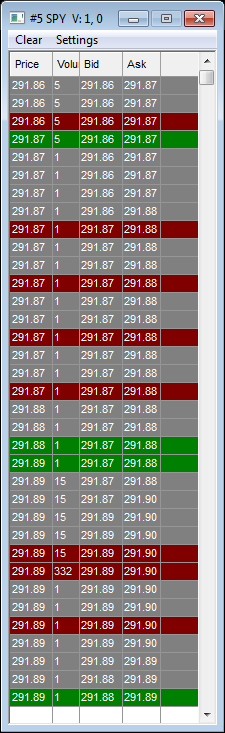 Time and sales bid and ask records colors