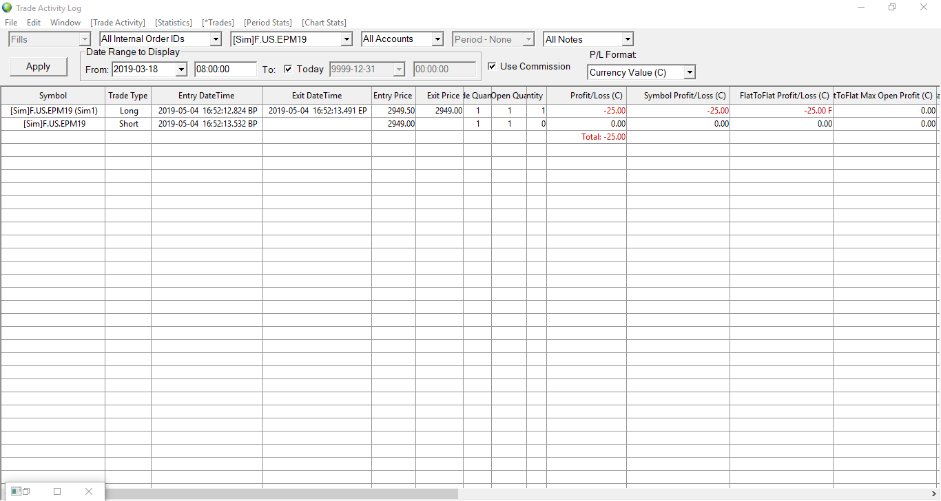 If it is a case of an order submission getting rejected/ignored, then refer to the method of troubleshooting this here: Automated Trading From an Advanced Custom Study: Debugging/Troubleshooting Automated Trading Systems Sierra Chart Support - Engineering Level Your definitive source for support. Other responses are from users. Try to keep your questions brief and to the point. Be aware of support policy: https://www.sierrachart.com/index.php?l=PostingInformation.php#GeneralInformation For the most reliable, advanced, and zero cost futures order routing, *change* to the Teton service: Sierra Chart Teton Futures Order Routing Date Time Of Last Edit: 2019-05-04 17:31:36