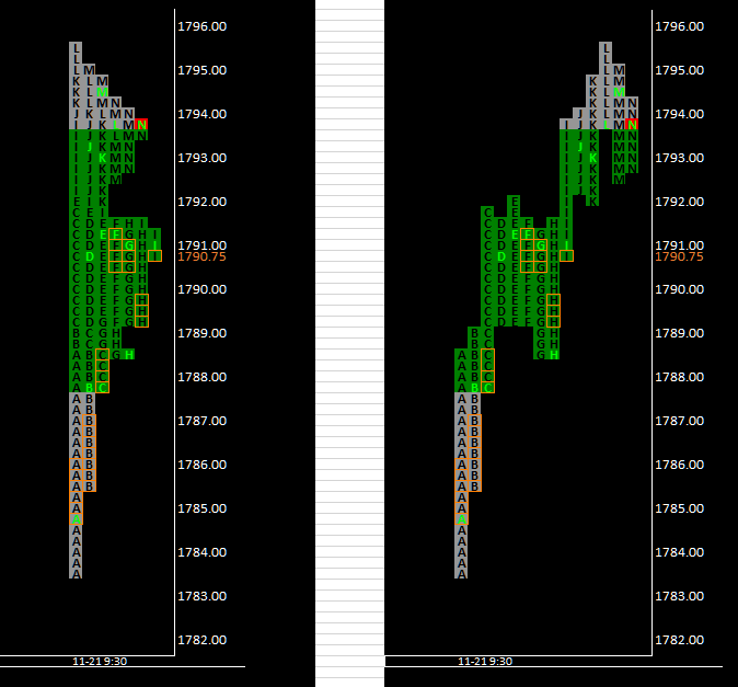 My primary request is to add a POC Trail or POC Migration option to the TPO Profile Chart study. I have no idea how difficult this would be and understand if this is too much to ask, especially, if others are not interested in this suggestion(s). Currently SC shows where the last, or current, POC level is (1790.75 on the attached picture "1. SC TPO" from Thursday). I would find it very useful (not sure if other users would...?) to have a trail of every level that was a POC throughout the day. In attached picture, "3. TPO Profile Suggestions," I have manually reproduced Thursday in a spreadsheet to show what I mean. I have placed a gold color border around every price that was a POC throughout the day. I may have missed a few and that's the point. Currently I write down every POC level throughout the day manually and am surely missing some POCs. Anyone who has studied Dalton's Market Profile material knows the value of recognizing POC migration. My secondary requests are (all pictured in attachment "3. TPO Profile Suggestions"): 1. allow the TPO letter background to be color filled as in picture "3. TPO Suggestions" to more easily visualize structure, anomalies etc. 2. allow the open of every 30 minute bracket to have a different color letter text (lime in attached picture) when the profile is not split out to individual columns. 3. settlement level from exchange (not the close) to have a red, or configurable color 4. ability to split "All Letters/Blocks In Own Column" rather than the current option of splitting one profile at a time with "Letters/Blocks In Own Column." Thanks - from a very happy customer! |