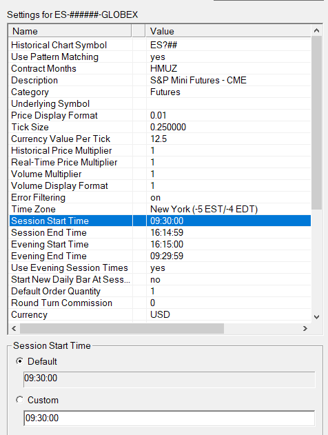 Hi, When I open the Symbol Settings, I can see that the session time settings for ES are correct. But if I open any other symbol, they are incorrect. And I'm talking about the "Default" settings, i.e., the ones that I cannot modify and that are automatically provided. Why is this the case? Can it be fixed (other than me having to manually fix all that?) I've attached a screenshot of the settings for ES where you can see that the Default values are correct, and another for NQ where you can see the Default values are incorrect (and this is the case for anything else). Thanks |