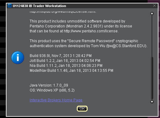 Hi Sierra Team, Pretty worried, I updated all my Interactive Brokers software (Nov 13 version) but cannot connect to the API anymore. The report tells me I am using server version 67 and need 68 minimun. I checked the API Version, it says 9.70. Do you know what could be the problem ? Shall I check into the API cpp Server files ? Here is Sierra Chart Report Connecting to IB data and trade server: 127.0.0.1. Port 7496. | 2013-11-25 21:53:41 The network socket is connected. | 2013-11-25 21:53:41 Socket connected to TWS. Sending client version: 62. Waiting for acceptance. | 2013-11-25 21:53:41 TWS server version: 67 | 2013-11-25 21:53:41 IB: Trader Workstation 9392 or higher is required to connect. TWS server version required: 68 | 2013-11-25 21:53:41 Error connecting to Data or Trading service. For help with this issue, press the Send For Analysis button on this window. | 2013-11-25 21:53:41 Thank you for your help, Thomas |