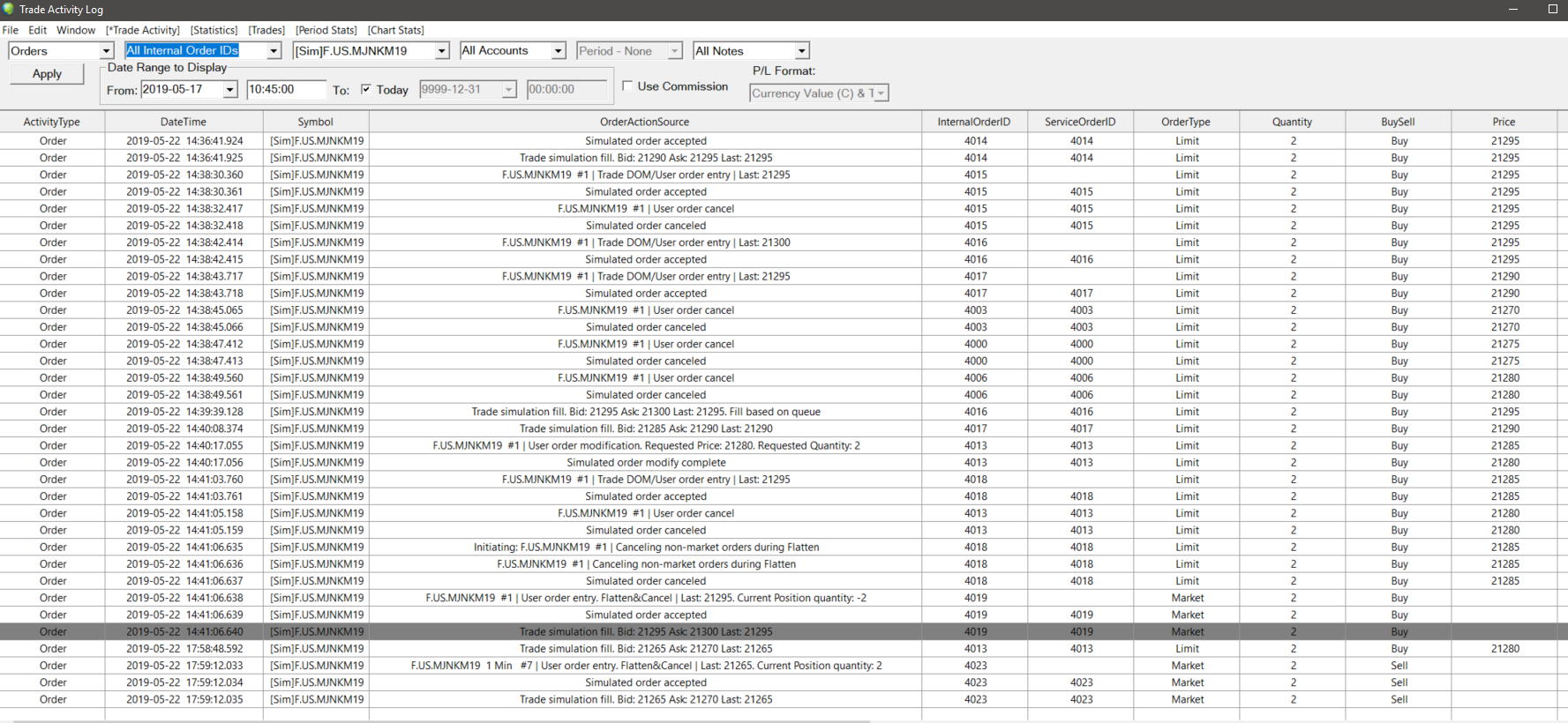 There is no order with this timestamp. Actually we see it but it has a different timestamp. That order was previously entered but it was canceled. We will have to think about this some more so we have a better understanding of this. But certainly this would never happen with live trading. Sierra Chart Support - Engineering Level Your definitive source for support. Other responses are from users. Try to keep your questions brief and to the point. Be aware of support policy: https://www.sierrachart.com/index.php?l=PostingInformation.php#GeneralInformation For the most reliable, advanced, and zero cost futures order routing, *change* to the Teton service: Sierra Chart Teton Futures Order Routing Date Time Of Last Edit: 2019-05-23 05:15:53