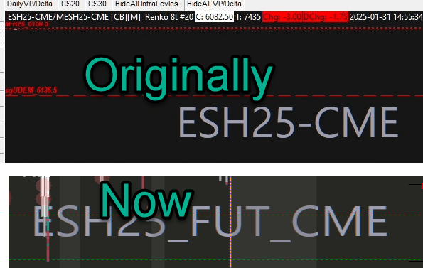 Translation from SC Data to Teton changes all my charts that I spent a lot of time on. Symbol on SC Data: ESH25-CME & the Teton Symbol is: ESH25_FUT_CME; i believe this is the issue. It changes all my charts and market generated information. Is there an easy solution to this? 1. Can I just translate one chart (the onne I trade off of), & leave the rest of the charts untranslated? 2. Manually change each chart?: What all did it change? Too much to do manually for several chartbooks & multiple charts on each I suspect. 3. What other options are there? |