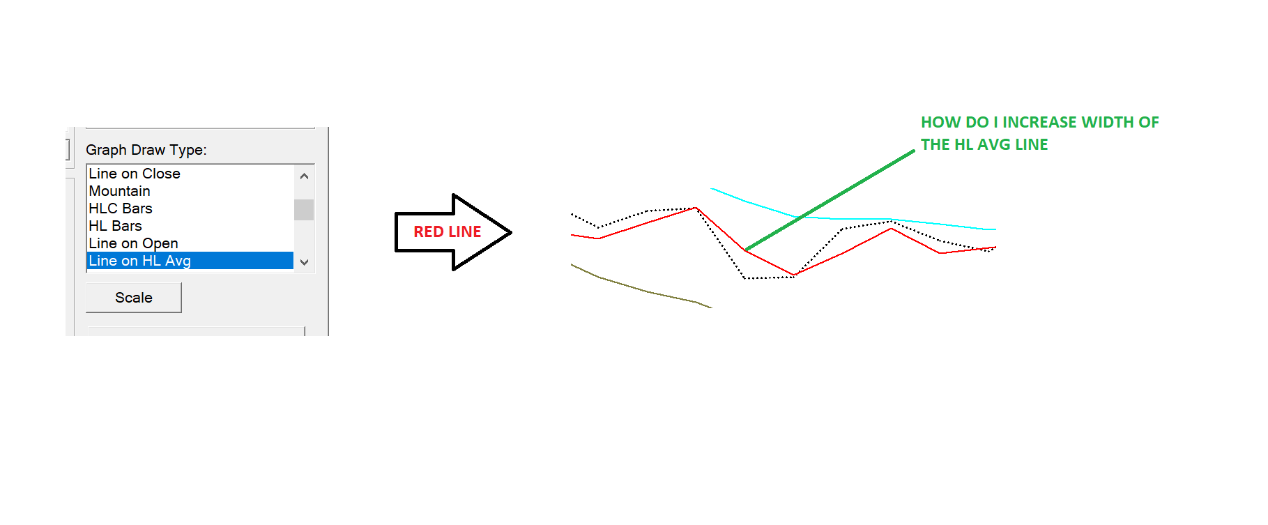 Hi, I have changed the Graph Draw Type from bar chart to HL Avg line. However, I can't find a way to increase the width of this HL Avg line. How can I do it? Thanks in advance. Vic |