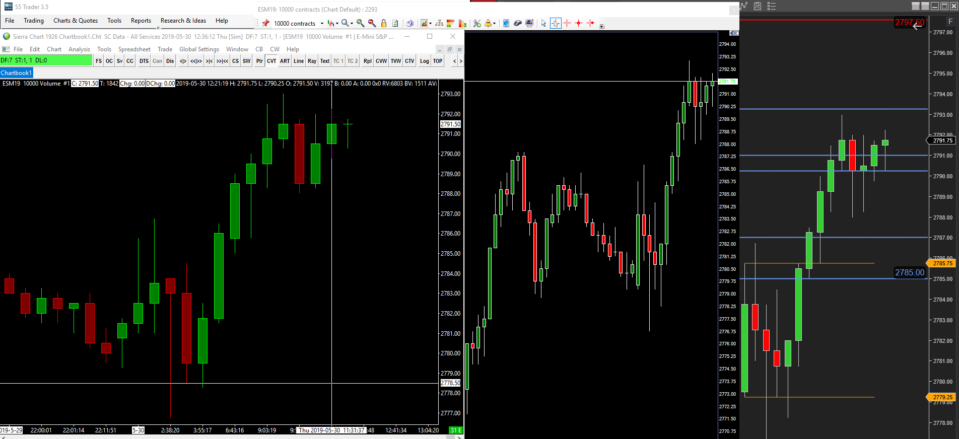 Hi there, i am plotting a chart using "volume per bar" feature, with 10k per bar. when i compare this chart with other platforms (i.e. ninja or OEC), it does not plot the same candles (open , close , high and low). I am using the same data feed for all the platforms and i have the same candles in the other 2 platforms. do you know what i might be doing wrong in sierra? thanks a lot! David |
