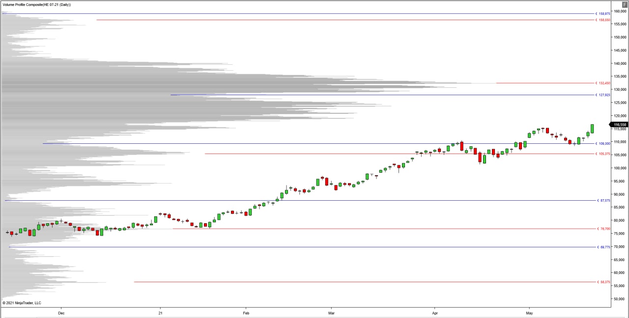 Hi guys, the more I worked with any longterm Volume profiles on futures the less sense it makes to me. It is highly depended on the adjustment method the software uses. For some markets (e.g. GC) it does not make too much difference but for others like Lean Hogs this will end up in totally different results. NinjaTrader rolls differently to SierraChart and therefore different views result from this. None of it is wrong but I think there is no "right" due to the issue of rolling technique. To observe a longerterm profile with a single expiration is okay, but obviously does not bring too much information if you want to view a 2+ year chart. This is just my 2 cents about this topic after a couple of months thinking about it :) By the way: it is the same Max, due to various reasons I needed to register again to SC Date Time Of Last Edit: 2021-05-24 12:15:22