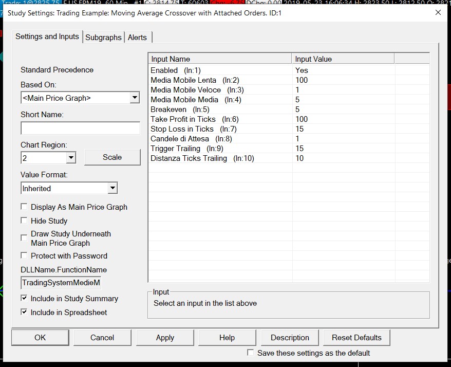 Setting the parameters as suggested: https://www.sierrachart.com/Download.php?Folder=SupportBoard&download=29002 https://www.sierrachart.com/Download.php?Folder=SupportBoard&download=29003 + indipendent scale I have this result chart: https://www.sierrachart.com/Download.php?Folder=SupportBoard&download=29001 it is not the expected result because it inserts the graphs of the 3 moving averages + the arrows indicating the entrances and exits in the wrong region, it should be the region 1, while the Candela vector now is in the right region, the 2. It also uses the same scale in region 2 for all the lines: moving averages, arrows, Candela .. going to flatten everything.. this is because the Candela line should have a different reference system(scale) than moving averages and arrows. However it would be enough to have only the Candela line in the region 2 and all the other lines in the region 1.. but I don't see how it can be done.. Working with the ACISIL if possible.. |