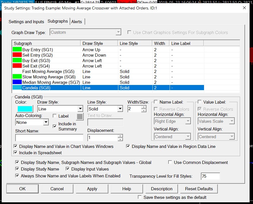 First, you need to use the Study Subgraph Reference as stated previously to reference that subgraph (Subgraph 8). From there you can either display the Study Subgraph Reference in another chart region, as you have stated you want to do. To do this, refer to the information here: Chart Studies: Settings and Inputs Tab >> Chart Region Also, note that in that same section is the information for how to overlay a study in the same region. Therefore, if you want to display the Candela subgraph in the main chart region, you would just need to follow those instructions, which basically amounts to setting the scale for the Study Subgraph Reference to Independent. For the most reliable, advanced, and zero cost futures order routing, use the Teton service: Sierra Chart Teton Futures Order Routing |