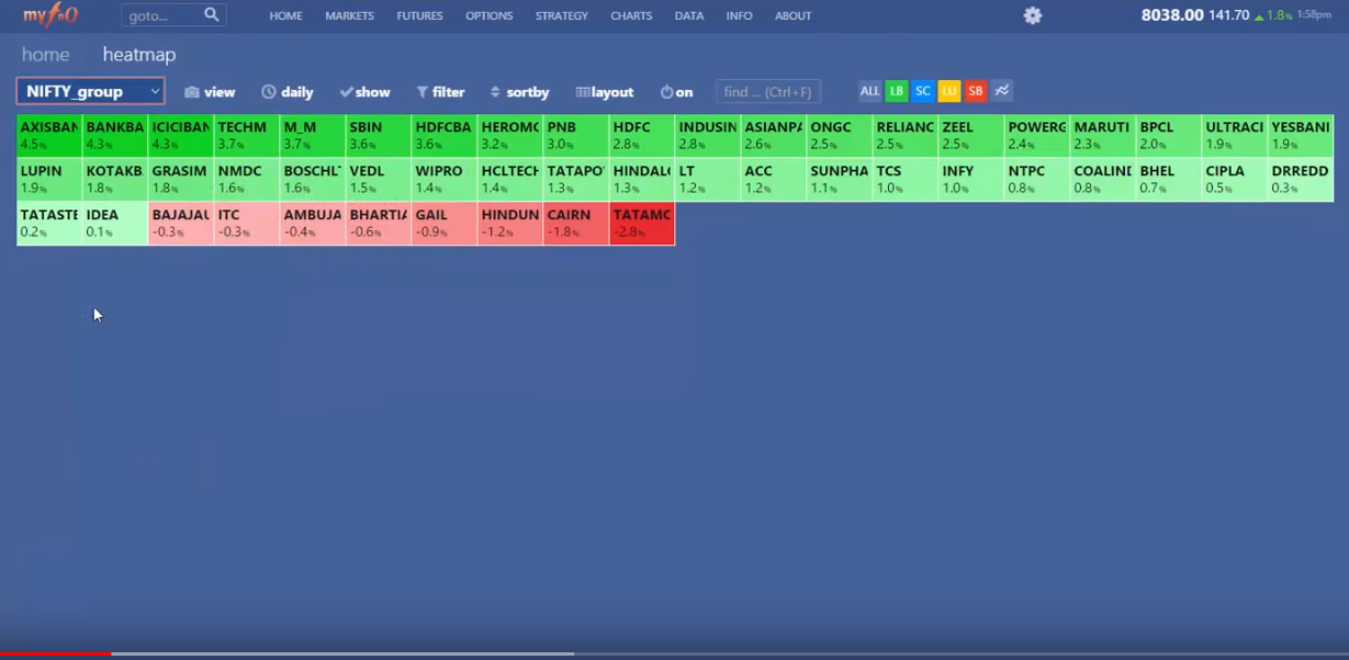 How would I be able to list the top 50 weightings' NQ constituent stocks into a chart and represent each of them using different degrees of green and red color based on the % of their increase in price within that particular day individually?