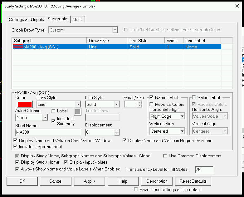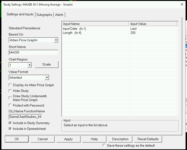 Hi, i defined some Charts in Sierra with MAs and EMAs on 4h Chart the MA200 is not displayed. Even the Value for the MA200 is wrong. |