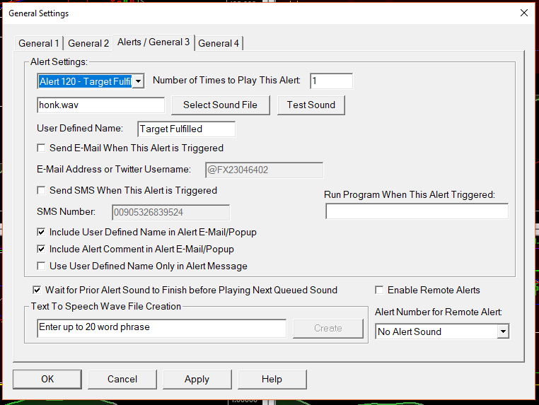 I handled this. I was referring to getting an alert when Profit Target is reached. On top of that, you have 3 stop types. Stop Stop with Bid/Ask Triggering Stop with the Last Triggering The last two does not invoke a stop loss triggered alert defined in General Trade Settings>Play Alert When Stop is Filled. |