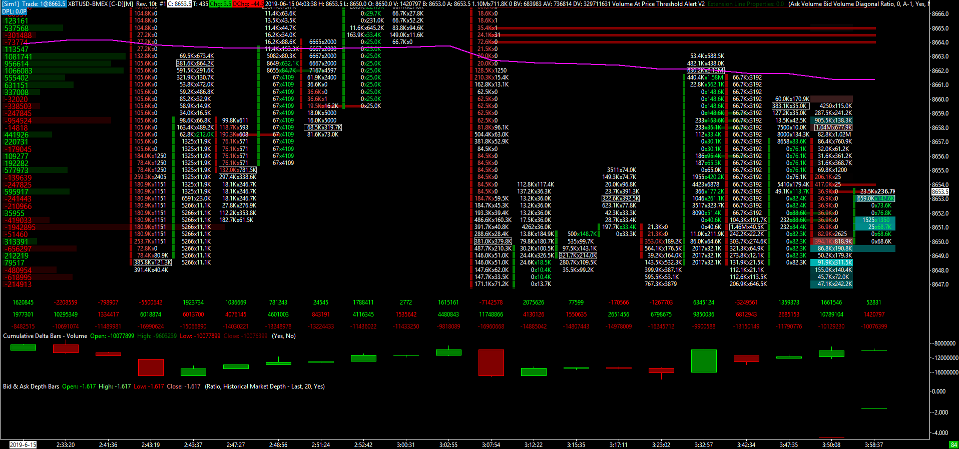 When trying Numbers Bars with Bitmex, getting some strange duplicate numbers appearing in sequential Bid/ask ticks. I verified this is not what actually happened on Bitmex. Attached Screenshot and the chartbook. Image: http://www.sierrachart.com/image.php?Image=1560571423509.png Chartbook is attached. |