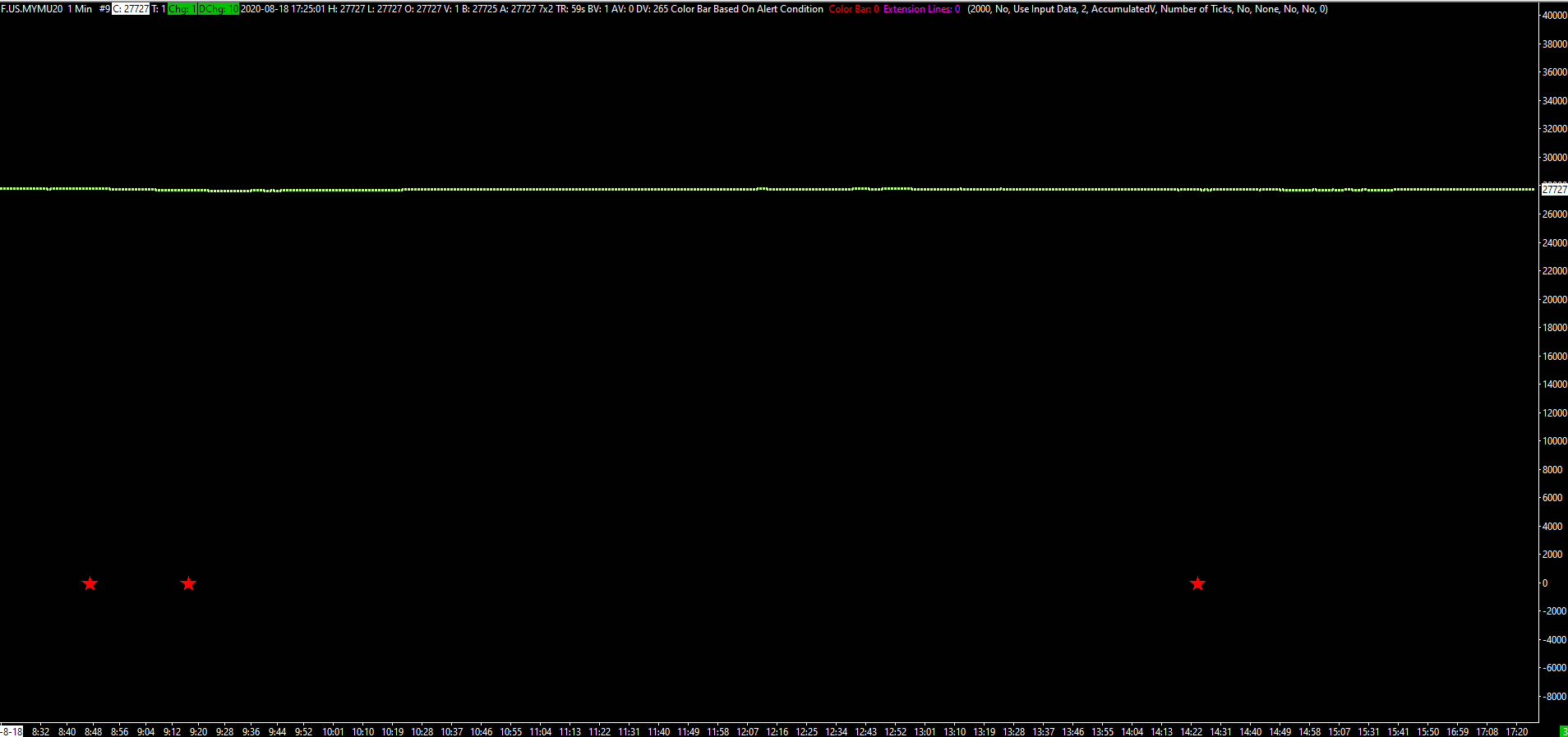 Please refer to the attached image for additional clarification.... Can the color of the text made to match the sign of the accumulated delta when we have the case of an upthrust with a negative delta and vice a versa? In the attached image, as an example, the text for the accumulated delta would be red instead of green when the delta is "negative on an upthrust;" and vice a versa. |