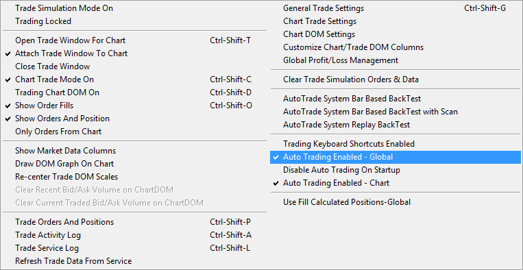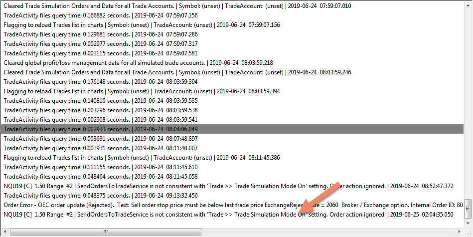 Hello, when trading live with some ACSIL code to modify attached order I am getting following message: "NQU19 [C] 1.50 Range #2 | SendOrdersToTradeService is not consistent with 'Trade >> Trade Simulation Mode On' setting. Order action ignored. | 2019-06-25 02:04:35.050" I understand it has to be set correctly (according to this Automated Trading Management: SendOrdersToTradeService) which I think I have done but still getting error message. Check the screenshot attached Code I use within sc.SetDefaults block: SendOrdersToService.Name = "Send/Modify Orders to Trade Service"; SendOrdersToService.SetYesNo(true); sc.SendOrdersToTradeService = SendOrdersToService.GetYesNo(); In simulation (reply) mode, everything works great! Any ideas what I could be doing wrong? Appreciate your help |