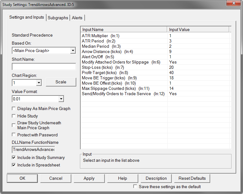 You must move this line: sc.SendOrdersToTradeService = SendOrdersToService.GetYesNo(); Below the sc.SetDefaults block. Sierra Chart Support - Engineering Level Your definitive source for support. Other responses are from users. Try to keep your questions brief and to the point. Be aware of support policy: https://www.sierrachart.com/index.php?l=PostingInformation.php#GeneralInformation For the most reliable, advanced, and zero cost futures order routing, *change* to the Teton service: Sierra Chart Teton Futures Order Routing |