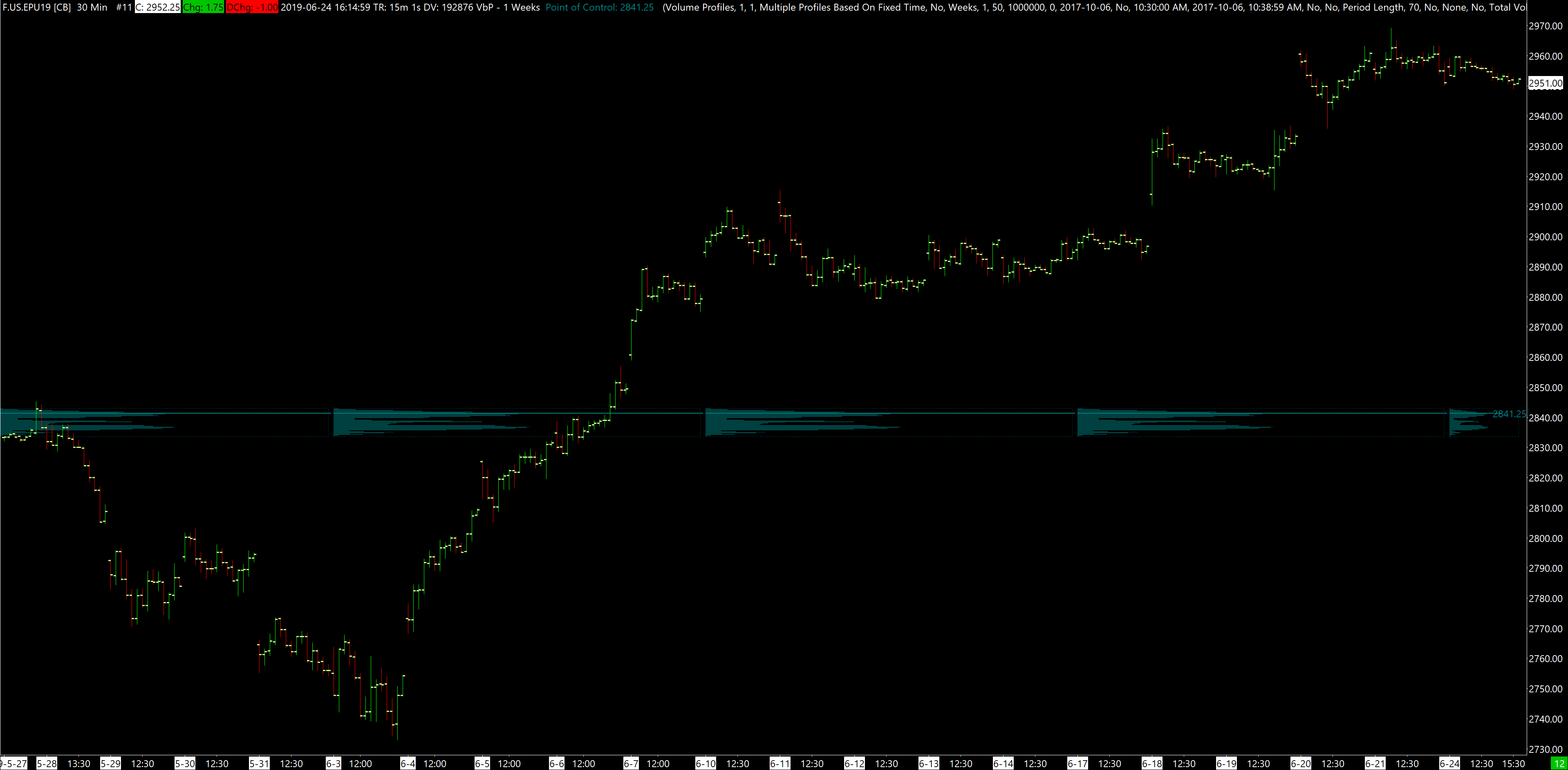 I opened a new Intraday Chart for ES September futures. Chart Settings: - Days to load 100 - Bar Period 30 minutes - Un-check use evening session - check automatically rollover futures symbol - choose continuous contract date rule rollover, back adjusted Volume by Price Input 33 Multiple Profiles Based on Fixed Time Input 34 Weeks This works fine. Now when I make a change: Input 31 1 I get this: http://www.sierrachart.com/image.php?Image=1561467418835.png I tried changing the scale on the study from automatic to same as region, but that doesn't have an effect. Any suggestions? Thanks |
