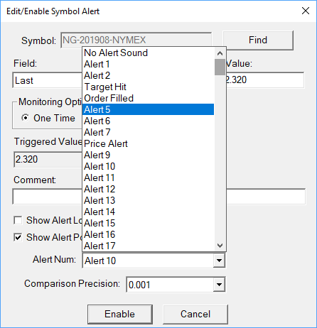 You need to assign them to the individual Alert Numbers through the General Settings: https://www.sierrachart.com/index.php?page=doc/GeneralSettings.html#Tab_General3 Sierra Chart Support - Engineering Level Your definitive source for support. Other responses are from users. Try to keep your questions brief and to the point. Be aware of support policy: https://www.sierrachart.com/index.php?l=PostingInformation.php#GeneralInformation For the most reliable, advanced, and zero cost futures order routing, *change* to the Teton service: Sierra Chart Teton Futures Order Routing |