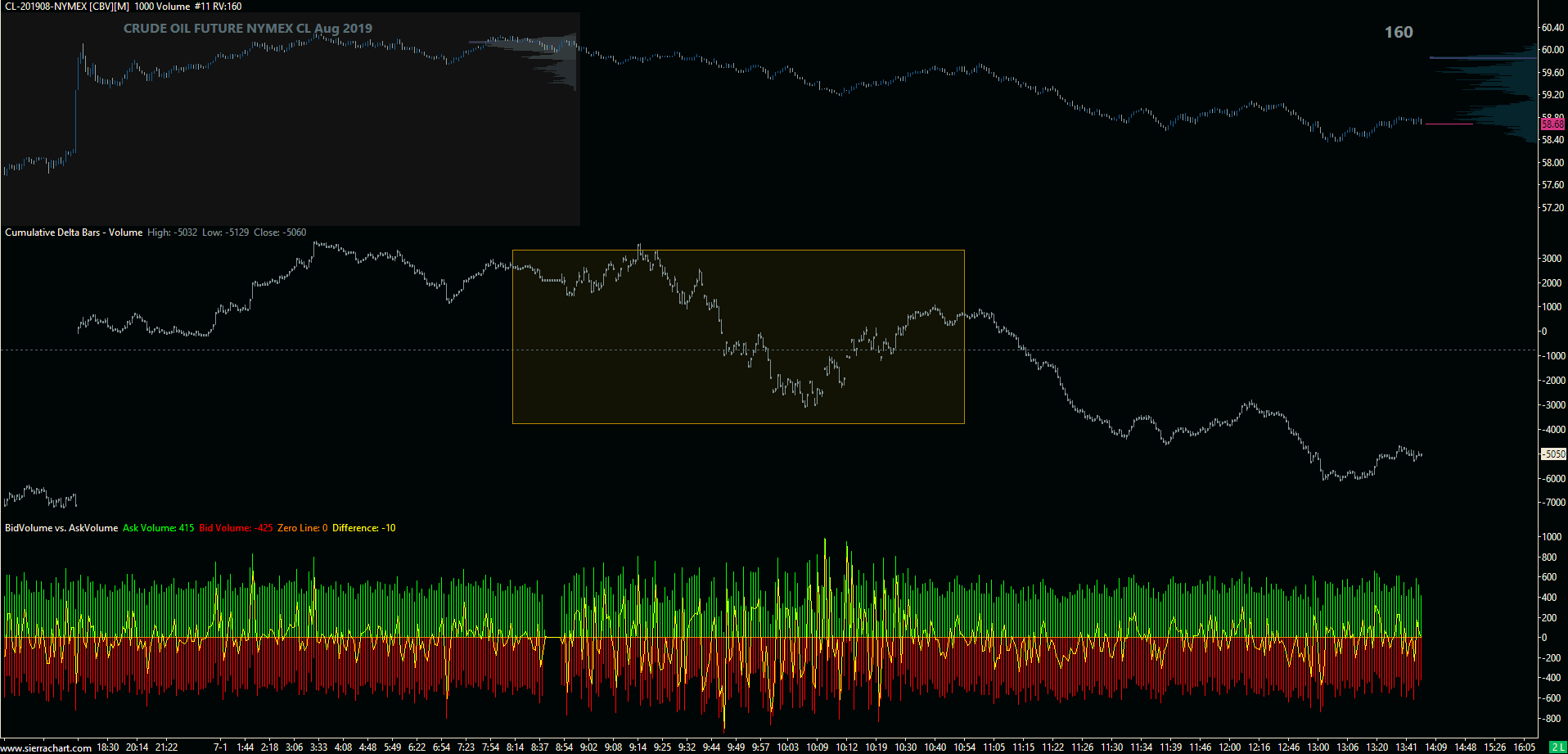 My apologies if I upload the incorrect study you requested - I did not see a Bid Volume vs Ask Volume study exactly, so I guessed you wanted Cumulative Delta Bars - Up/Down Tick Volume http://www.sierrachart.com/image.php?Image=1562002466258.png |