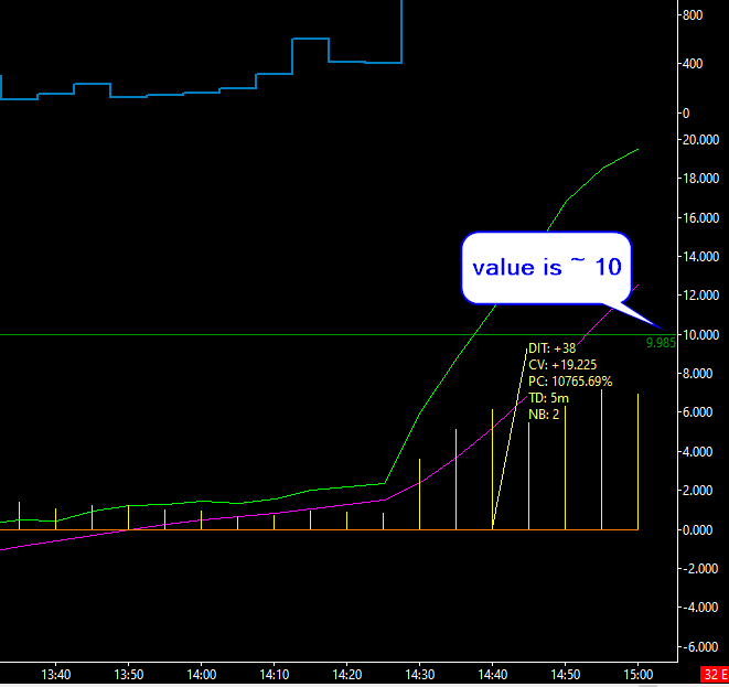 You need to look at the Price Difference with the Chart Calculator line. Be sure to enable that option in the Properties for that tool.