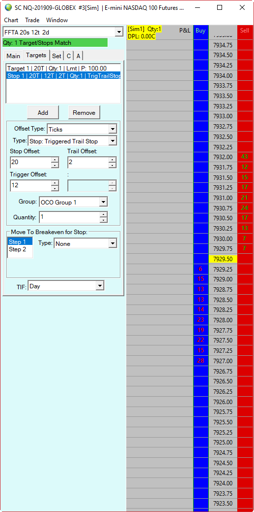 Stop -20 ticks, Trigger +12 ticks, Trail Distance 2 ticks. This morning I noticed that the attached order parameters are now working yet the working order lines on the chart and the DOM are showing +/- 20 ticks (5 pts) see attached |