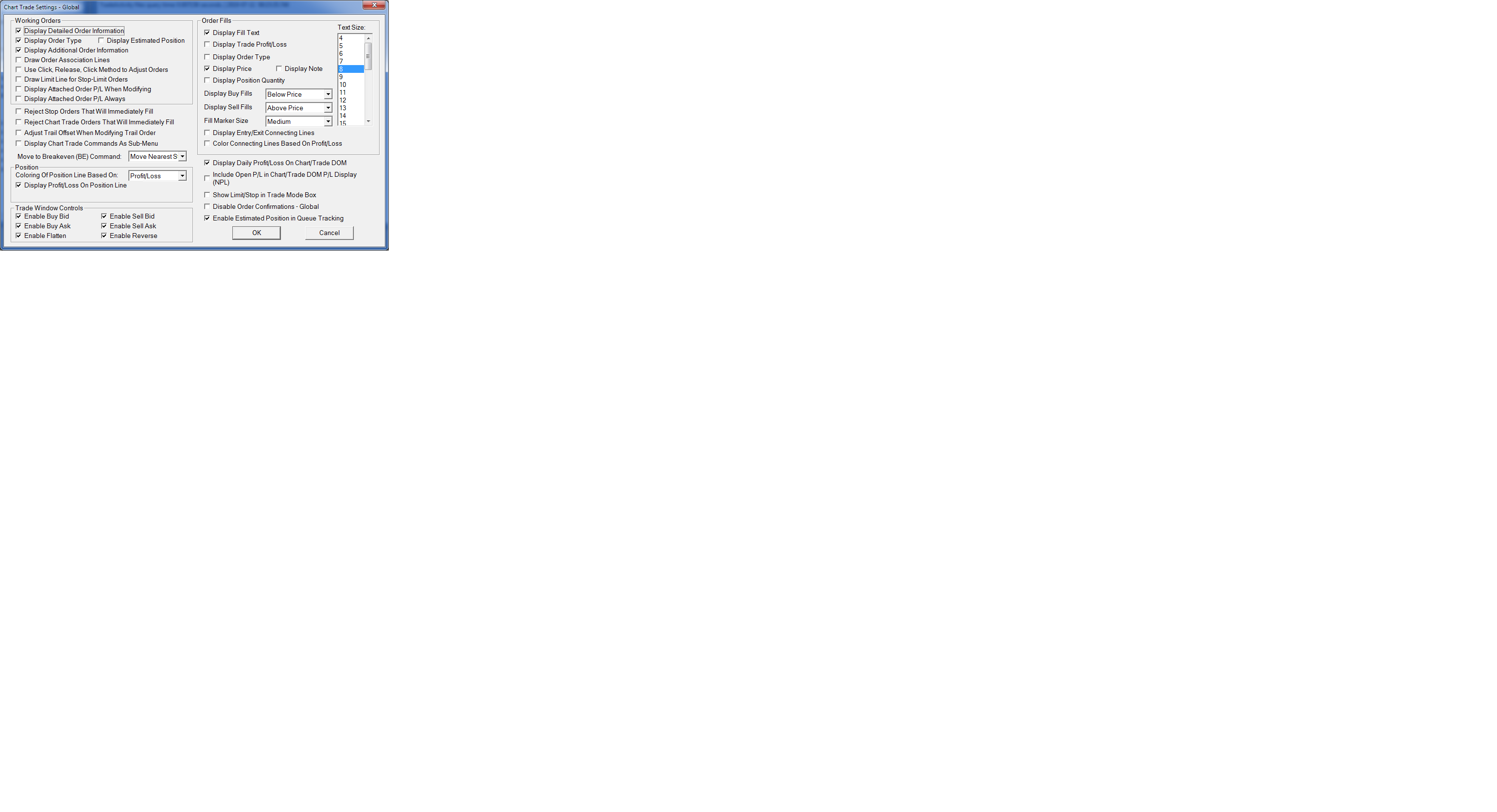 At the top left of the Global Settings >> Chart Trade Settings window there is an option named "Display Estimated Position". Enable that.