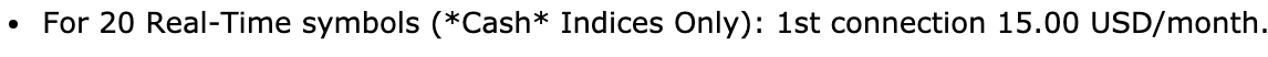 The real-time connection is going to be 25USD a month. Not 15. And the exchange fee you quoted is the correct one. And if you just require CME data you should use this new feed: Denali Exchange Data Feed Sierra Chart Support - Engineering Level Your definitive source for support. Other responses are from users. Try to keep your questions brief and to the point. Be aware of support policy: https://www.sierrachart.com/index.php?l=PostingInformation.php#GeneralInformation For the most reliable, advanced, and zero cost futures order routing, *change* to the Teton service: Sierra Chart Teton Futures Order Routing Date Time Of Last Edit: 2019-07-16 21:11:28