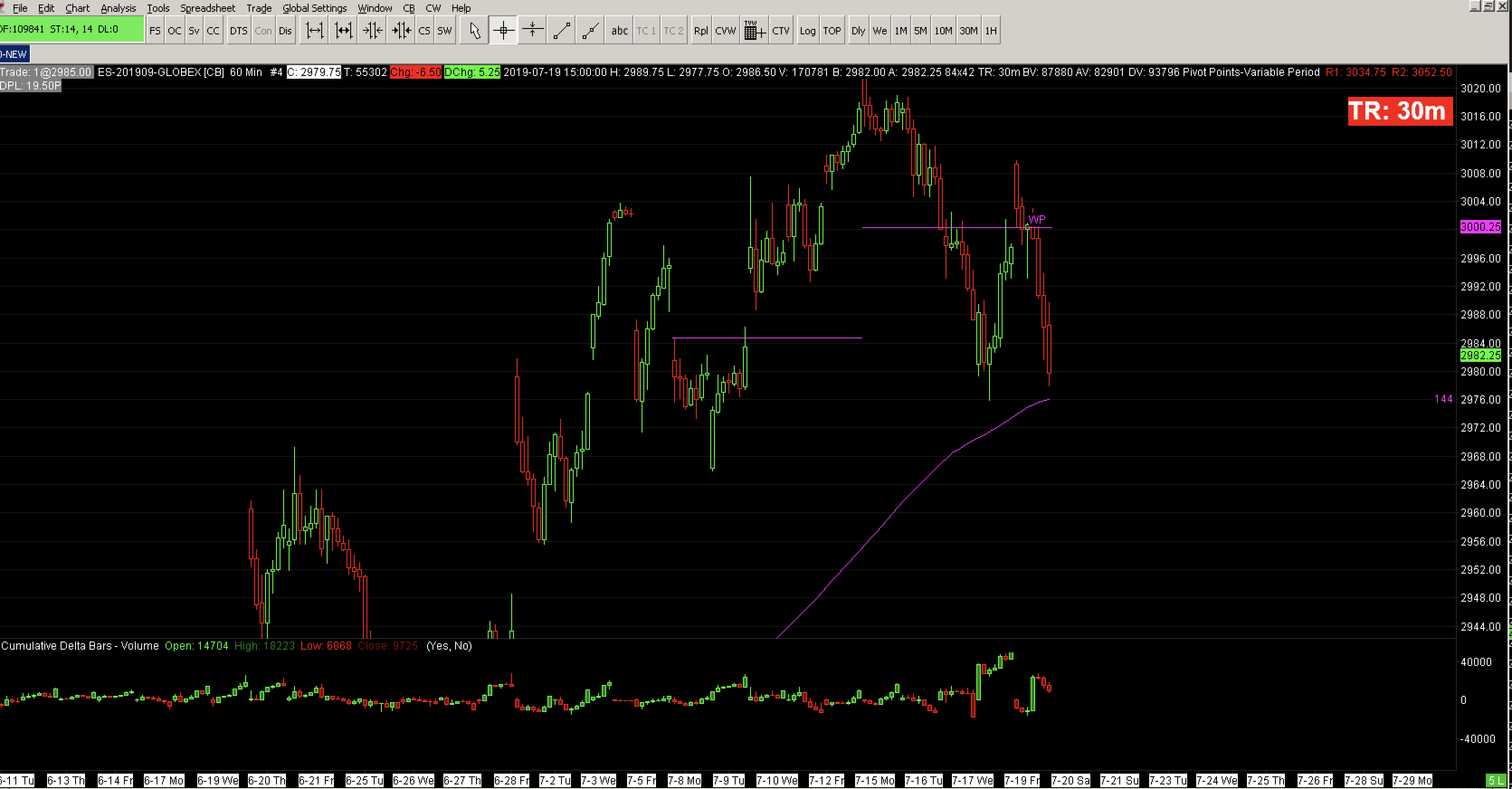 I have one chartbook open with different chart-types and timeframes on the ES in it. All charts update and work fine except one. I did "delete and reload" multiple times but to no avail. Please help.