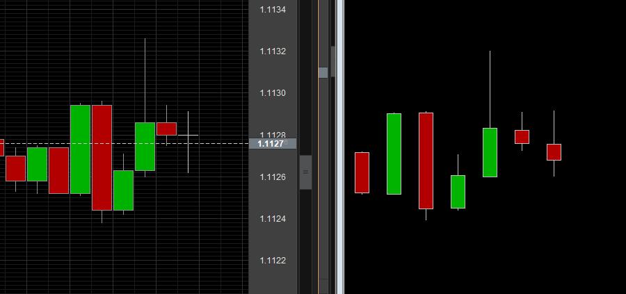Current Version. How to decrease side by side space between candles while maintaining desired body width? Default Chart Bar Spacing has no effect. I'm after spacing similar to chart on left in pic. Also, is there any way to save as default the price display format? Changing from .00001 to .0001 has driven me nuts for years. Thanks in advance. |