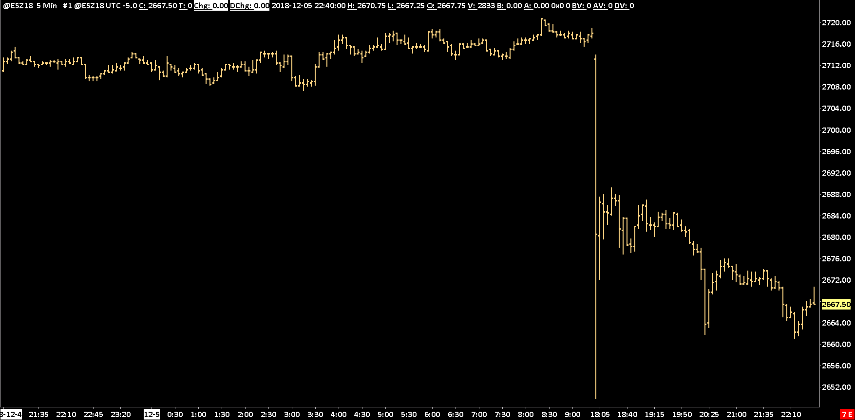 ES Z9 data missing for whole RTH session - December 2018 5th