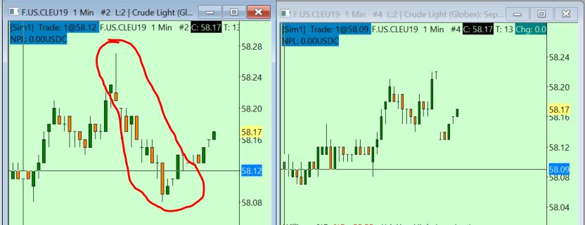 Hello, I have experienced it multiple times that one of the chart will have a few minutes of data missing. No matter what timeframe I use for that particular chart it won't show up the missing data. I have put in 2 x 1-min charts side by side for the same symbol and time-frame. You will be able to see that the chart on the right doesn't have the data for a few minutes. Please look and advise what's causing this issue and how can I get it fixed. tx K |