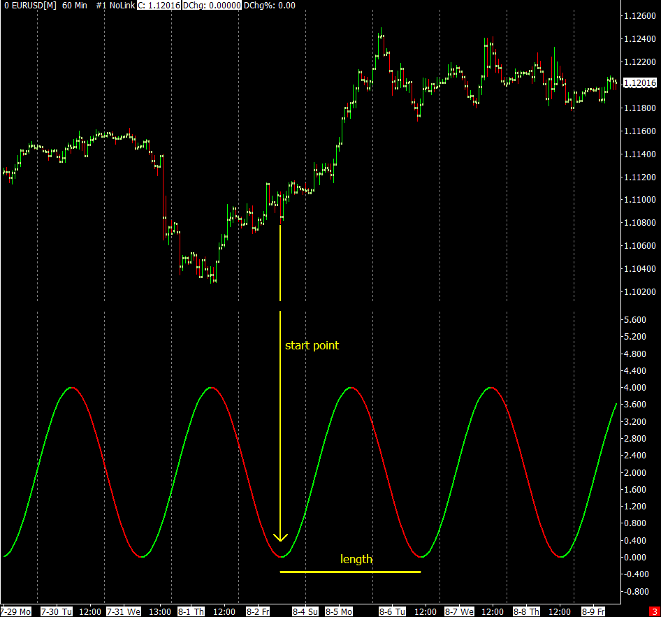 I'm trying to code (and learn, I'm a very newbie coder) in ACSIL a sine wave indicator like the one in the image, that I had built via spreadsheet study, with exact starting point and length as input and auto-coloring slope. For now I was able to get only an horizontal line. So I have the math function but I'm unable to "wave" the function. Too bad. Looking through .cpp examples was not useful, because the majority of them (the simplest at least) are tied to price, while this indicator is tied to time. Can someone help me with the code? Thank you Date Time Of Last Edit: 2019-08-11 07:20:04