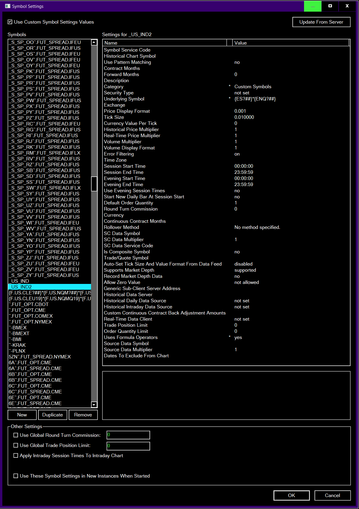That is not correct. You do not set the Underlying Symbol. The New symbol added needs to be a very specific formula with specific symbols: Custom Calculated Symbols: Instructions Sierra Chart Support - Engineering Level Your definitive source for support. Other responses are from users. Try to keep your questions brief and to the point. Be aware of support policy: https://www.sierrachart.com/index.php?l=PostingInformation.php#GeneralInformation For the most reliable, advanced, and zero cost futures order routing, *change* to the Teton service: Sierra Chart Teton Futures Order Routing |