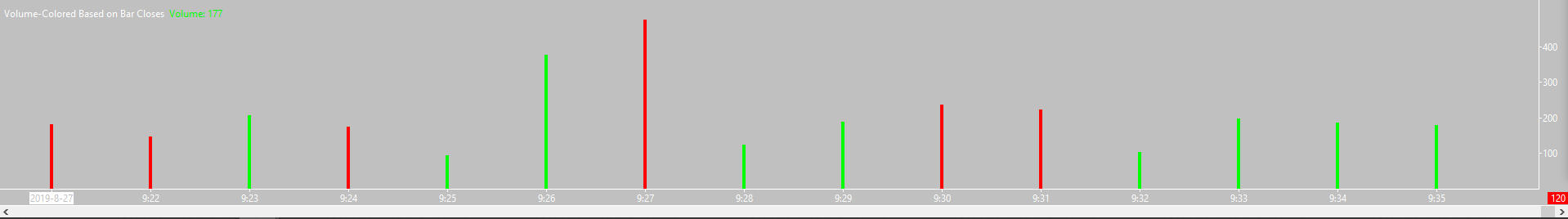 Dear Sierra Chart Support Team, I noticed a while ago that the "volume-colored based on bar closes" study in my CL charts apparently does not work correctly. (The study is located in chart region 2; I use it in 1 minute charts) The volumes (and the associated bars) are only displayed correctly whenever I reload/recalculate the chart manually by pressing the "Insert" key. Interestingly, the indicated volume also differs between two different 1 min charts (I have one 1 min numbers bars chart and one 1 min candlestick chart). Only after recalculating each charts manually, the studies show the same bar sizes (with the scale being the same in both charts). Do you have any idea what might be the reason and what I can do to fix it (to relieve me from having to press the insert key all the time for proper volume indications)? Thank you very much in advance for any help. Kind regards Date Time Of Last Edit: 2019-08-23 09:30:21