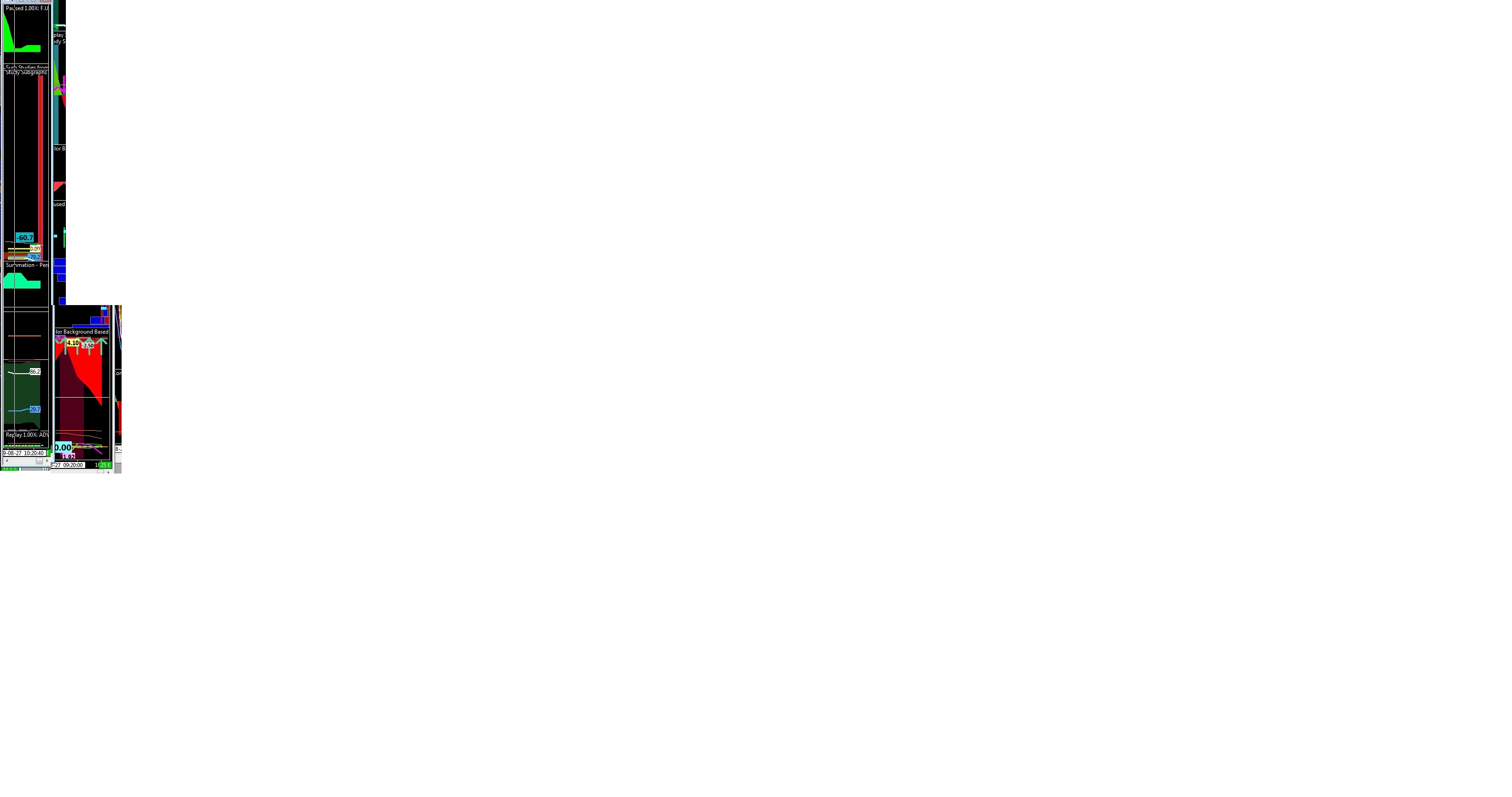 My Version 1483 worked well in many aspects, such as region adjust without going to tools menu. Subgraph scales were independent per study. I updated to V-1957 due to CQG protocol requirements, by a work-around you suggested, to use V1957 as server to a separate-folder V-1483, (too large/complex and shifted spreadsheets when I tried to convert, so can't for a long while. I'm attempting a smaller Chartbook version of my huge V1483-one, to all be in one V1957 folder. I had problems on LIFO vs FIFO trade reporting (found your setting option for LIFO)--- Problem: subgraphs will not scale independently-- the scale window only shows and accesses the main chart scale. The old default showed whatever was the subgraph. Where is original independent scaling setting? Or a very-visible global setting to fix that. Right-clicking the right border edge no longer accomplishes changes to sub scale. Nor does accessing the scale window under Analysis-Study. That is, nothing on this instruction Chart Scale and Scale Adjusting: Opening the Scale Settings Window For a Study works.. the Study just stays the top Chart scale. "Reset" on the region scale does nothing. Changing the sub-graph scale (example: to new constant range) changes the main chart scale. Main and region scales windows only affect the main chart scale. The subgraphs look like they are defaulting to automatic but there's no way to tell. Some I can adjust by sliding inside the border. I used study collections from V-1483. ADDED: Subgraphs also are snapping to same 1 tick .25 with crosshair readings, as if subgraph was entirely based on Main chart. This is unusable, as many subcharts' levels are in decimals and tool Lines must be marked at decimal levels.. they also are snapping by .25. Most regions have several studies overlaid, each with slightly different ranges. I can't view any of that properly. Some of these look more like Independent or "same as region" scales. Completely unlike what I had, and not adjustable. See example pic: (I could show you the prior, if you want) Date Time Of Last Edit: 2019-08-28 14:03:28
