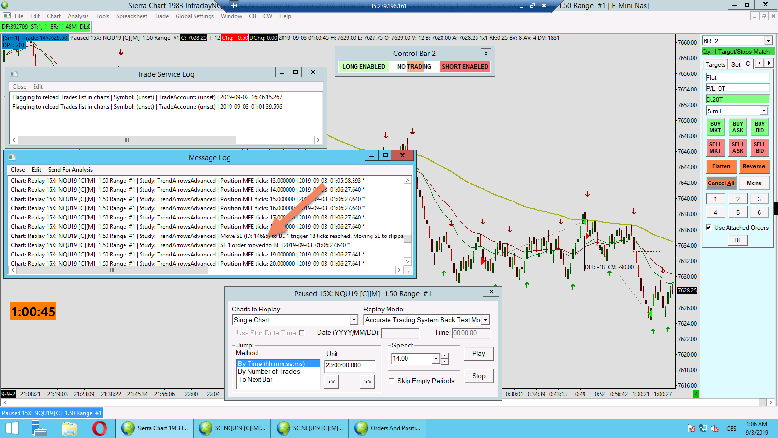 I am adjusting Stop1Order for a trade open with ACSIL. When using SIM / REPLAY mode everything works great. Once a trade is open Stop1InternalOrderID is set for example to value 14695 so ID is non-zero and order can be modified successfully But when I switch to live trading and open a trade with the same code Stop1InternalOrderID is always 0 so the order cannot be selected to modify With the very same code what could be the reason? Trade LIVE & REPLAY screenshot attached Also attaching executed orders table with IDs shown This opened the sell trade: s_SCNewOrder NewOrder; NewOrder.OrderQuantity = OCO1Size.GetInt() + OCO2Size.GetInt() + OCO3Size.GetInt(); NewOrder.OrderType = SCT_ORDERTYPE_MARKET; NewOrder.TimeInForce = SCT_TIF_GOOD_TILL_CANCELED; int Result = (int)sc.SellEntry(NewOrder); if (Result > 0) { EntryOrderID = NewOrder.InternalOrderID; Target1OrderID = NewOrder.Target1InternalOrderID; Stop1OrderID = NewOrder.Stop1InternalOrderID; } This is how I move to B/E // Get and move the existing SL 1 order s_SCTradeOrder ExistingStopOrder1; if (sc.GetOrderByOrderID(Stop1OrderID, ExistingStopOrder1) != SCTRADING_ORDER_ERROR) { if (IsWorkingOrderStatus(ExistingStopOrder1.OrderStatusCode)) { double NewStop = 0.0; if (ExistingStopOrder1.BuySell == BSE_SELL) { NewStop = PositionData.AveragePrice + (double)BE1OffsetTicks.GetInt() * sc.TickSize; } s_SCNewOrder ModifyStopOrder1; ModifyStopOrder1.InternalOrderID = Stop1OrderID; ModifyStopOrder1.Price1 = NewStop; if (sc.ModifyOrder(ModifyStopOrder1) != SCTRADING_ORDER_ERROR) { logMessage.Format("SL 1 order moved to BE"); if (LogMessages.GetYesNo() == 1) sc.AddMessageToLog(logMessage, 1); } else { logMessage.Format("Error modifying SL 1 order, ID: %u", Stop1OrderID); if (LogMessages.GetYesNo() == 1) sc.AddMessageToLog(logMessage, 1); } } moveBE1triggered = 1; } Thanks for your great support! Date Time Of Last Edit: 2019-09-03 06:27:42