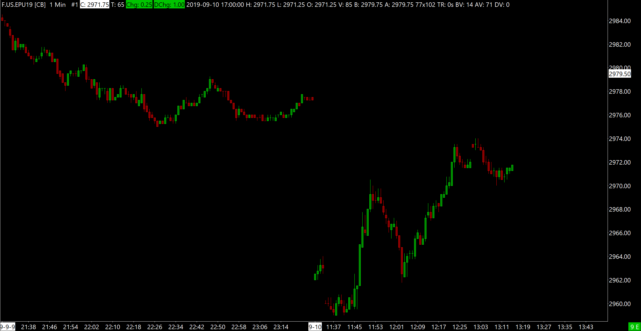 Hello, I seem to have a gap in my futures data from CQG & AMP and I've double-checked my session times many times to make sure it wasn't a small mistake. I'll post a link below and upload an image of my settings as well. Also, I've been trying to get volume bars to show up on my DOM, I went to Global settings -> Chart DOM settings -> Current volume bars length relative to bid/ask, and nothing comes up. The only thing I can get to appear from this menu on my DOM is Display DOM depth totals. Thanks in advance, I am fairly new to the platform so it may be a stupid mistake on my end. http://www.sierrachart.com/image.php?Image=1568152724123.png Date Time Of Last Edit: 2019-09-11 03:13:43