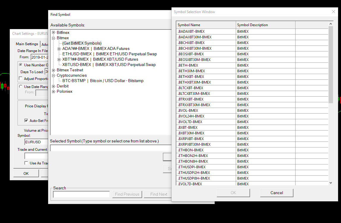 Those are all the symbols Bitmex has. Be sure to scroll down the list. We are looking at another provider for more symbols. Sierra Chart Support - Engineering Level Your definitive source for support. Other responses are from users. Try to keep your questions brief and to the point. Be aware of support policy: https://www.sierrachart.com/index.php?l=PostingInformation.php#GeneralInformation For the most reliable, advanced, and zero cost futures order routing, *change* to the Teton service: Sierra Chart Teton Futures Order Routing |