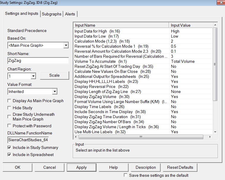 Hi Tom, The settings, as requested. Symbol: S&P 500 September 2019. F.US.EPU19 Time Zone: London(+0GMT/+1BST) ZZ Settings: Screenshot attached. Starts at 18:44:00 2019-09-12 Thanks for your suggestion regarding the High. This was just a simple test, my system is more complex and will require many more formulas. Many Thanks! Date Time Of Last Edit: 2019-09-14 21:48:19